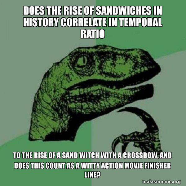 Does The Rise Of Sandwiches In History Correlate In Temporal Ratio To The Rise Of A Sand Witch With A Crossbow And Does This Count As A Witty Action Movie Finisher Line
