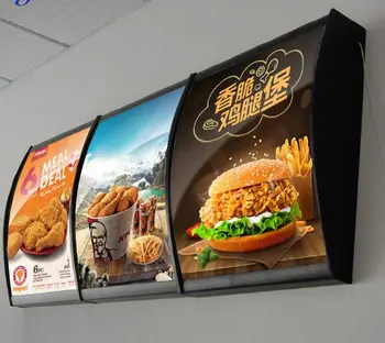 China Led Menu Board Advertising Indoor Fast Food Restaurant Media Signage Arc Curve Light Box China Led Light Box Light Box