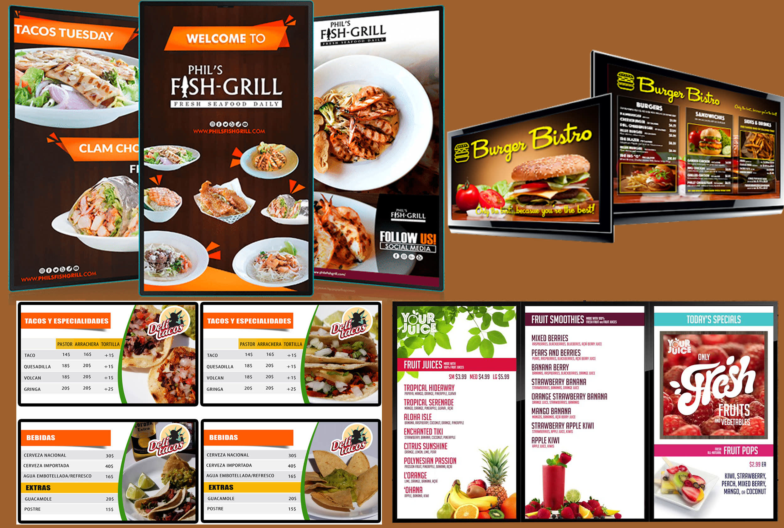 Accepts 10" x 14" insert Overall Dimensions Length 14" Width 10". How it works After connecting ScreenCloud to your screen, you can quickly create mouthwatering digital menu boards right from your browser Add items, descriptions, images, categories, calories and prices – your changes will appear on your screen in seconds. LED Lighted Restaurant Menu Board – Vista’s LEDbased menu boards for restaurants were launched in 11 Since then, more than 1,000 have been installed on every continent Vista’s illuminated panels have many advantages, but the main one is reflected in the customer’s bottom line The ability to present dishes using highdefinition.