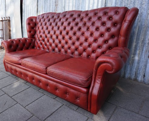 Red Leather Buttoned High Back Chesterfield Wing Sofa From Pegasus 1960s For Sale At Pamono