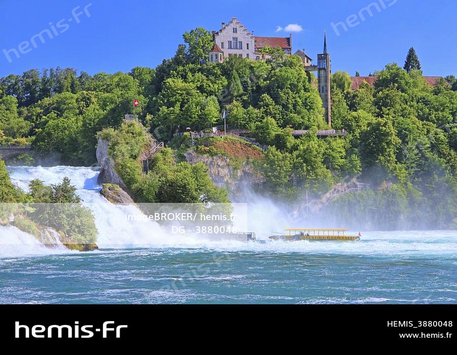 Bateau Touristique Sur Les Chutes Du Rhin Avec Schloss Laufen Pres De Schaffhouse Canton De Schaffhouse Suisse Photo Stock Alamy