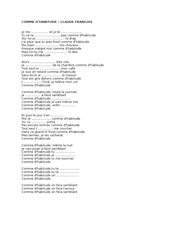 Comme D Habitude Exercice A Trous Francais Fle Fiches Pedagogiques