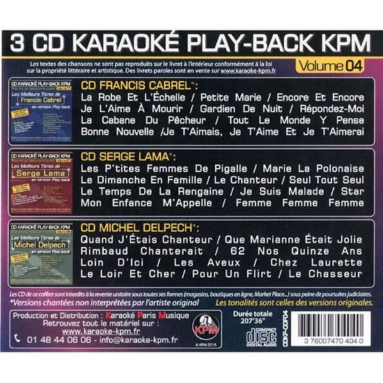 Coffret 3 Cd Karaoke Play Back Kpm Tubes Chanson Francaise Vol 04 Achat Cd Cd Variete Francaise Pas Cher