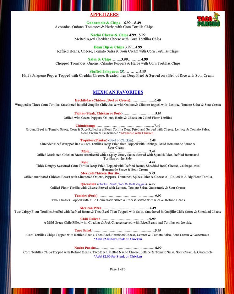 Menu Please Click On Pictures Taco Taco Of Ogden