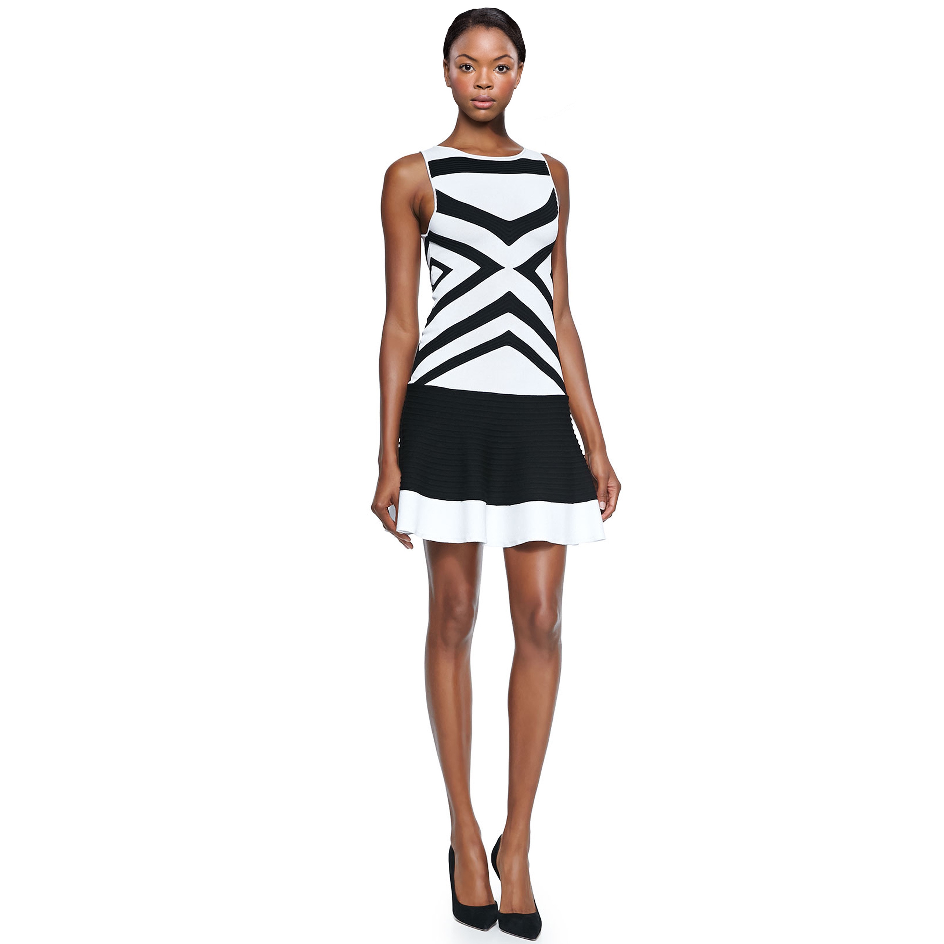 Ohne Titel Geo Knit Dress Fit Flare Dress Shopbazaar Dresses Fit Flare Dress Knit Dress