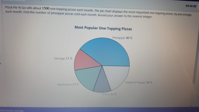 Solved The Pizza Pie N Go Sells About 1790 One Topping Pizzas Each Month The Pie Chart Displays The Most Requested One Topping Pizzas By Percen Course Hero