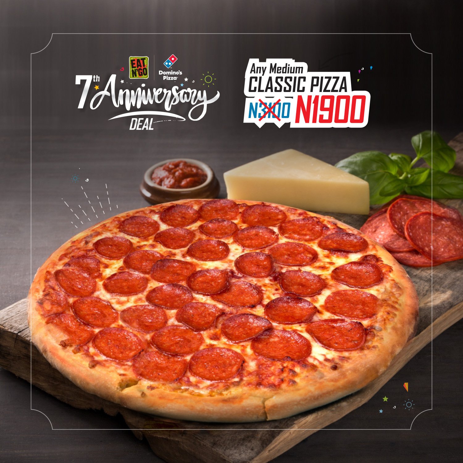 Dominosng Permit Us To Brag A Little Our Parent Company Eat N Go Is 7 Years Today We Are Celebrating The Domino S Style Order Any Classic Medium Pizza For N1900