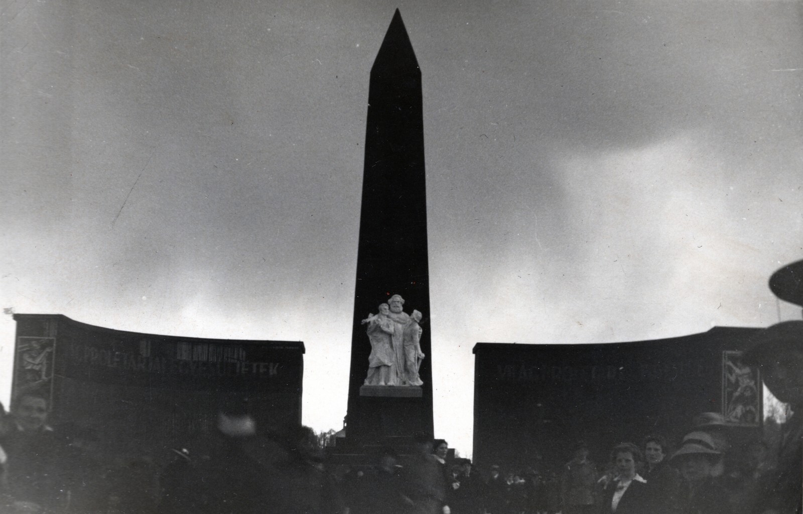 Hősök tere is surrounded by two important buildings, Museum of Fine Arts on the left and Palace of Art (or more accurately Hall of Art) on the rightOn the other side it faces Andrássy Avenue which has two buildings looking at the square – one is residential and the other one is the embassy of Serbia (former Yugoslavian embassy where Imre Nagy secured sanctuary in 1956). A Hősök tere aránylag jól megúszta a II világháborús bombázásokat Csak II Lipót szobra semmisült meg, illetve megsérült Mária Terézia és Ferenc József szobra, illetve találatot kapott a Hősök Emlékköve is 1945 után néhány évig különféle pártok tartottak itt a téren nagygyűléseket. – így ünnepeltük régen a majálist Budapesten Szerzők Nemes Nóra 04 30 1652 Hősök tere, az 1957 május 1i nagygyűlés közvetítése Ötvenhatosok tere (Felvonulási tér), dísztribün, május 1i riport Kádár Jánossal, mögötte Kiss Károly, a riporter Szepesi György 1960.