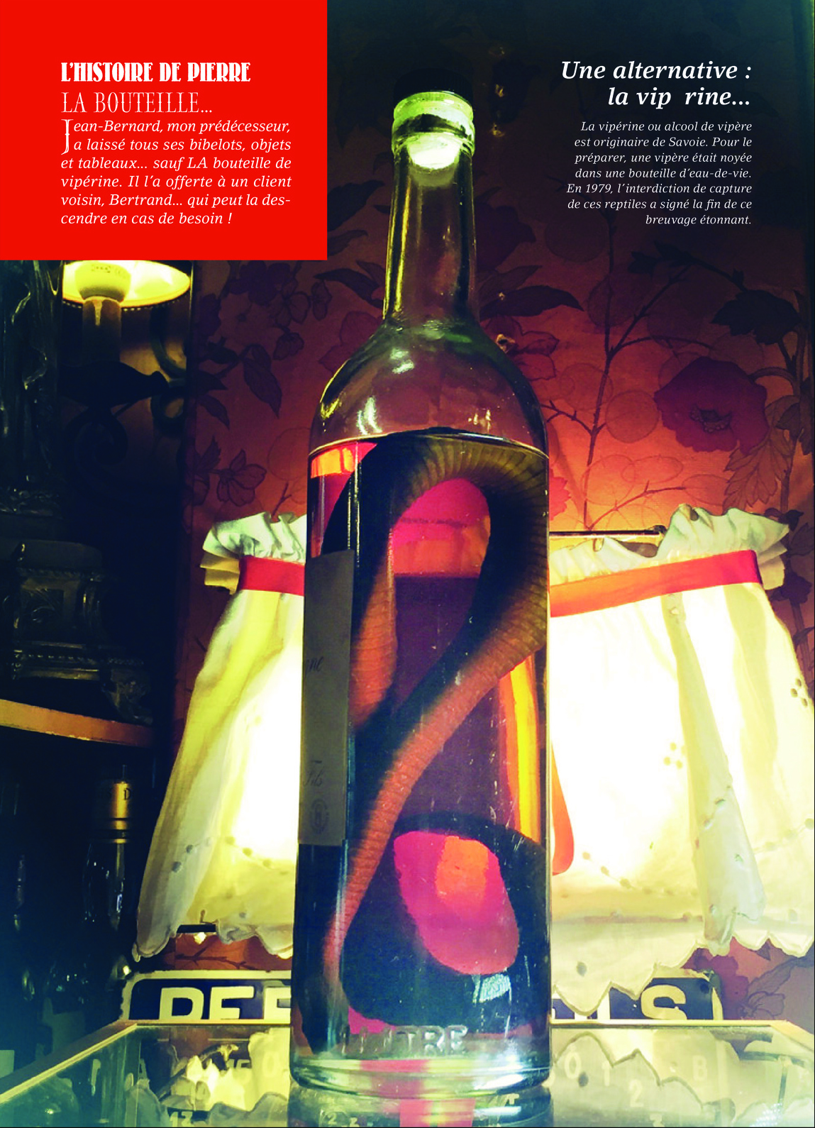 Summer was the season for preparing food for the rest of the year Mirabel plums and cherries in alcohol were stored away for special occasions She also made viperine, a kind of alcohol with a viper in it, reputed to give strength and cure colds All plants had their uses. L'alcool de vipérine est obtenu après la mise en bouteille d'un serpent vivant (généralement une vipère) dans un flacon d'eaudevie L'animal ainsi noyé et victime de convulsions libère son venin qui se répand dans le liquide réf souhaitée. La viperine La vipérine, en plus d'être une plante, est un alcool originaire des montagnes La vipère est introduite vivante dans une bouteille d'eau de vie.