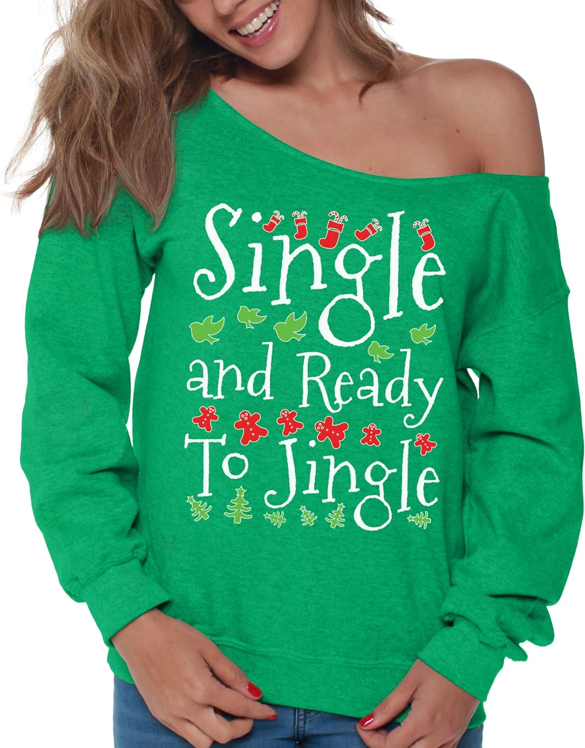 Vizor Off Shoulder Christmas Tops Single Jingle Christmas Sweater Single Women Gifts Clothing Women