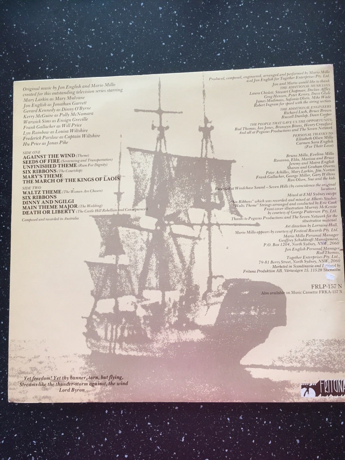 With Mary Larkin, Kerry McGuire, Jon English, Warwick Sims Mary Mulvane, an 18 year old Irish girl, is transported to New South Wales for seven years for doing little else than protecting her own property She must endure the horror of transport to Australia, and years of anxiety as a convict Mary, her friends and her family fight out their battle against a lively historical backdrop. In 1978, he worked with Jon English on the soundtrack for the television series, Against the Wind and its related single, "Six Ribbons" The series had international release, known as Mot alla vindar/Mot alle vindar/Mod vinden (1980) in Scandinavian countries where the album and single reached No 1 in Norway and No 4 in Sweden. Mot alle vindar (orig Against the Wind) er en australsk dramaserie på 13 episoder som gikk på Seven Network i 1978Serien handlet om noen irer som ble tvangssendt til Australia som straff for opprørskhet mot det britiske overherredømme Der måtte de starte et nytt liv Hovedrollene ble spilt av Mary Larkin og Jon EnglishRegien var ved George T Miller og Simon Wincer.