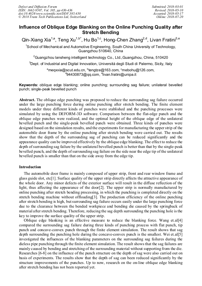 Influence Of Oblique Edge Blanking On The Online Punching Quality After Stretch Bending Scientific Net
