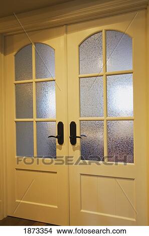 Portes Francaises A Verre Depoli Panneaux Dans A Maison Image Fotosearch
