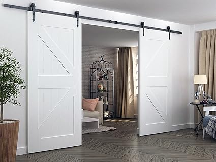 Aihom 3 66 M Double Portes Francaises Porte De Grange Coulissante Materiel Grange Porte Track Pour Suspendre Amazon Fr Bricolage