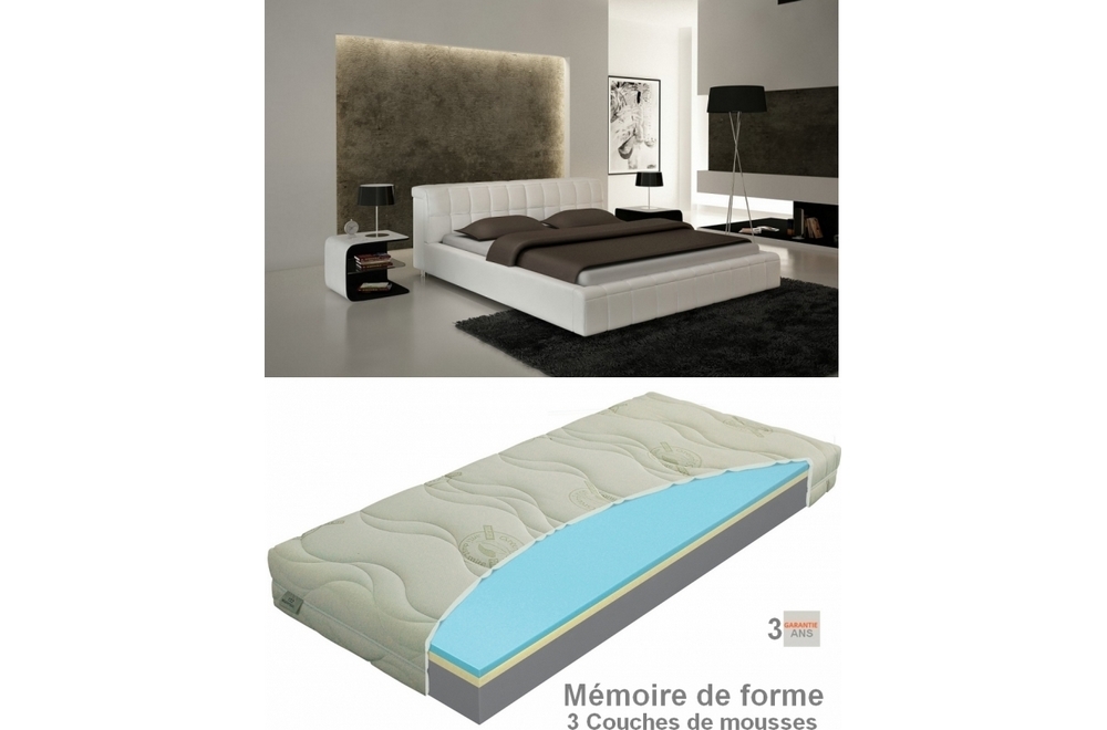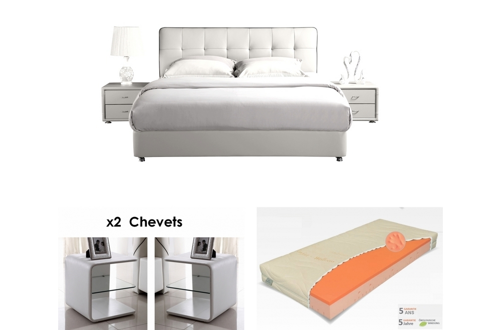 2eme Paiement Lit Design Cuir Italien De Luxe Berta Sommier A Lattes Blanc 140x0 2 Chevets Qualite Superieure Elvin Blanc Matelas Starvisco Memoire De Forme Luxe 140x0 Cm Epais 24 Cm Materasi