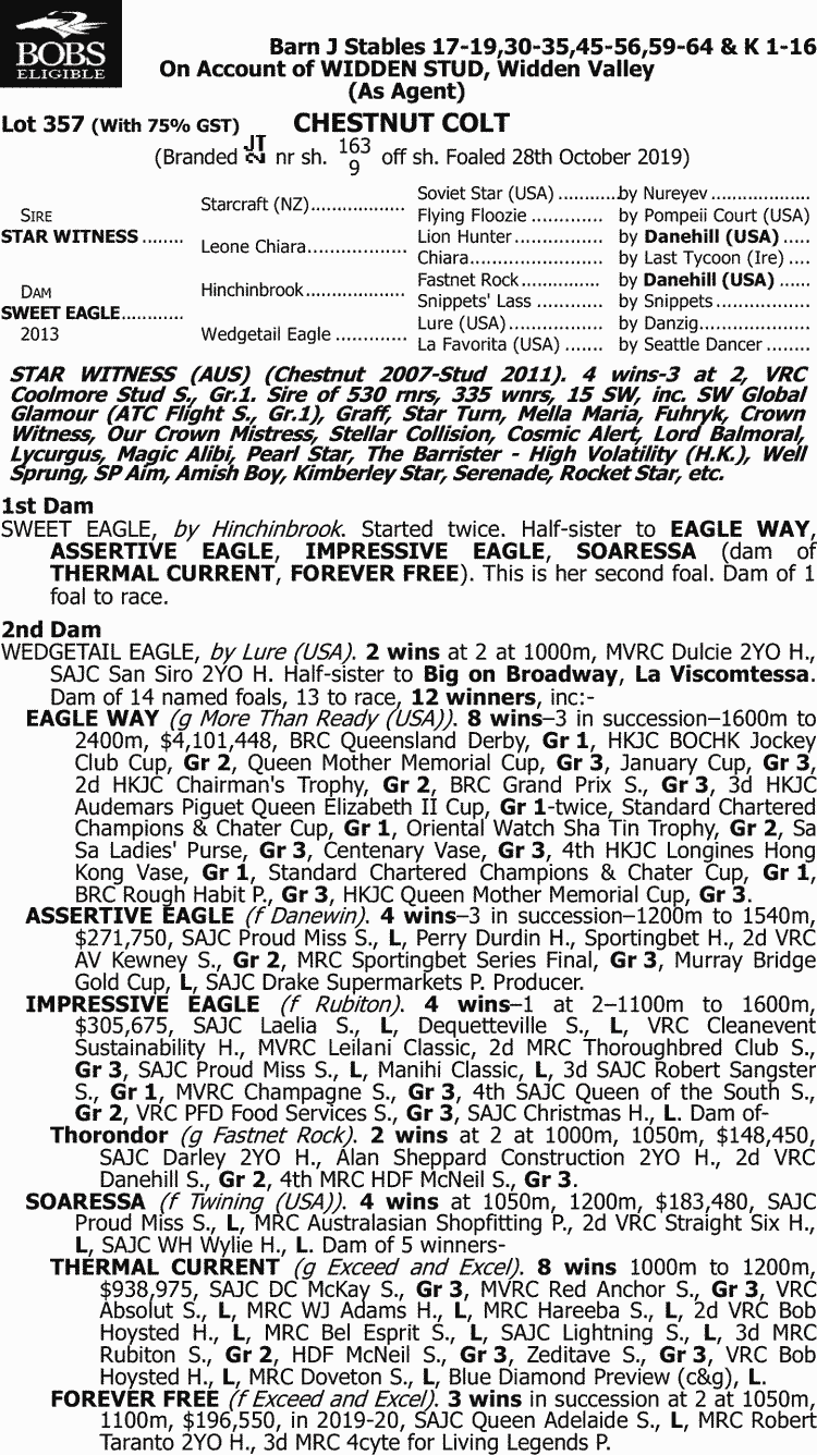 Inglis 21 Classic Yearling Sale Lot 357 Star Witness X Sweet Eagle