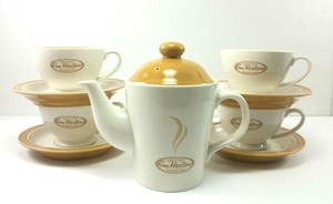 Tim Horton Cafe Tetera Y Tazas Platillos Conjunto De 4 Crema Beige 06 Ebay