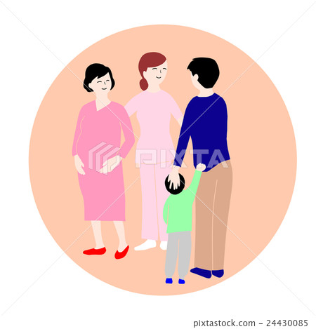 Pregnant Woman Family Baby Nurse Round Frame Stock Illustration