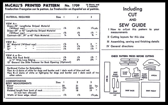Mccall S 1709 Dress Frock Sewing Pattern With Attached Etsy