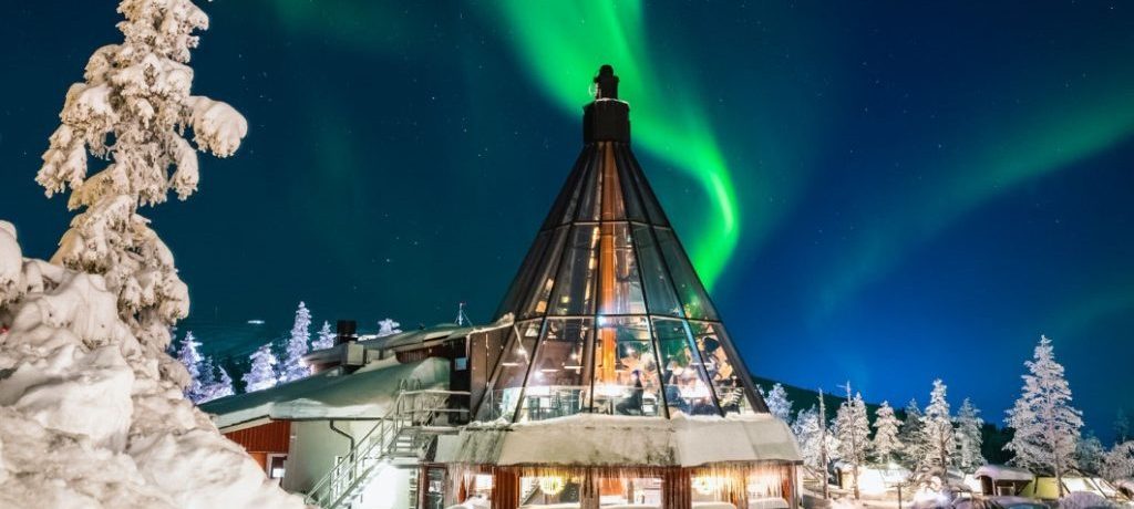 Levin Iglut – Golden Crown provides two different accommodation experiences In the glass igloos, you can fall asleep under the northern lights and starry sky and enjoy the astonishing fell landscape immediately after waking up The luxuriously equipped Northern Lights House building features its own sauna and a private terrace with a hot tub.