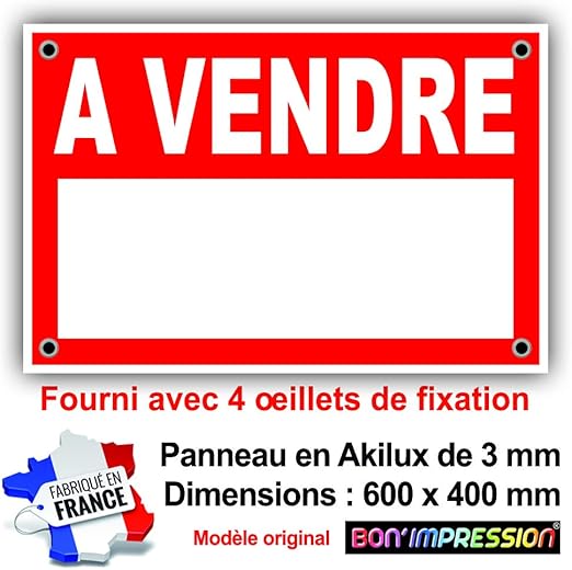Bon Impression Panneau A Vendre Pancarte A Vendre Akilux 600 X 400 Mm Env Fourni Avec 4 œillets Pour Accrochage Amazon Fr Cuisine Maison