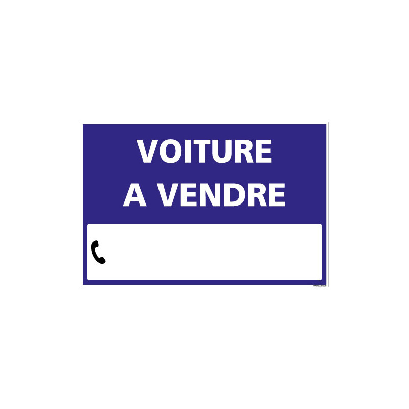 Caractéristiques de cette pancarte voiture à vendre Support Akylux 3,5 mm Dimensions 600x400 mm Livré avec une planche de chiffres (qui font 55mm de hauteur) en lettrage adhésif pour insérer, compléter le numéro de téléphone Existe en 3 couleurs rouge, orange et bleu En utilisant cette signalisation vous gagnerez en visibilité. Il est en revanche tout à fait possible de mettre une affiche sur sa voiture pour la vendre, lorsque celleci est stationnée dans l'enceinte de son propre jardin ou d'un domaine privé De plus. Non, en principe, il est interdit de mettre en vente un objet sans autorisation dans un lieu public (art R 6443 du code pénal)Quelle est la sanction encourue?.