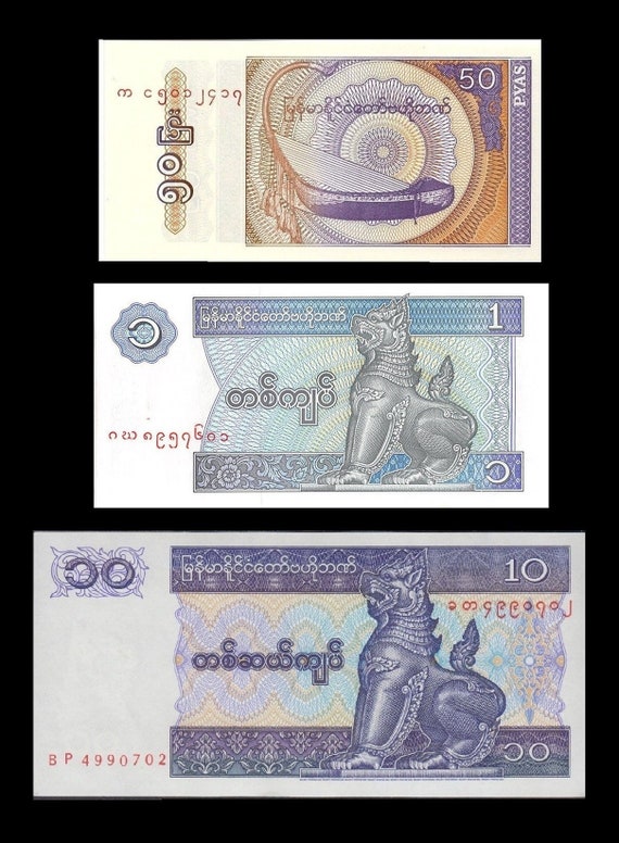 Myanmar Birmanie Monnaie 3 Ensemble De Billets De Banque Etsy