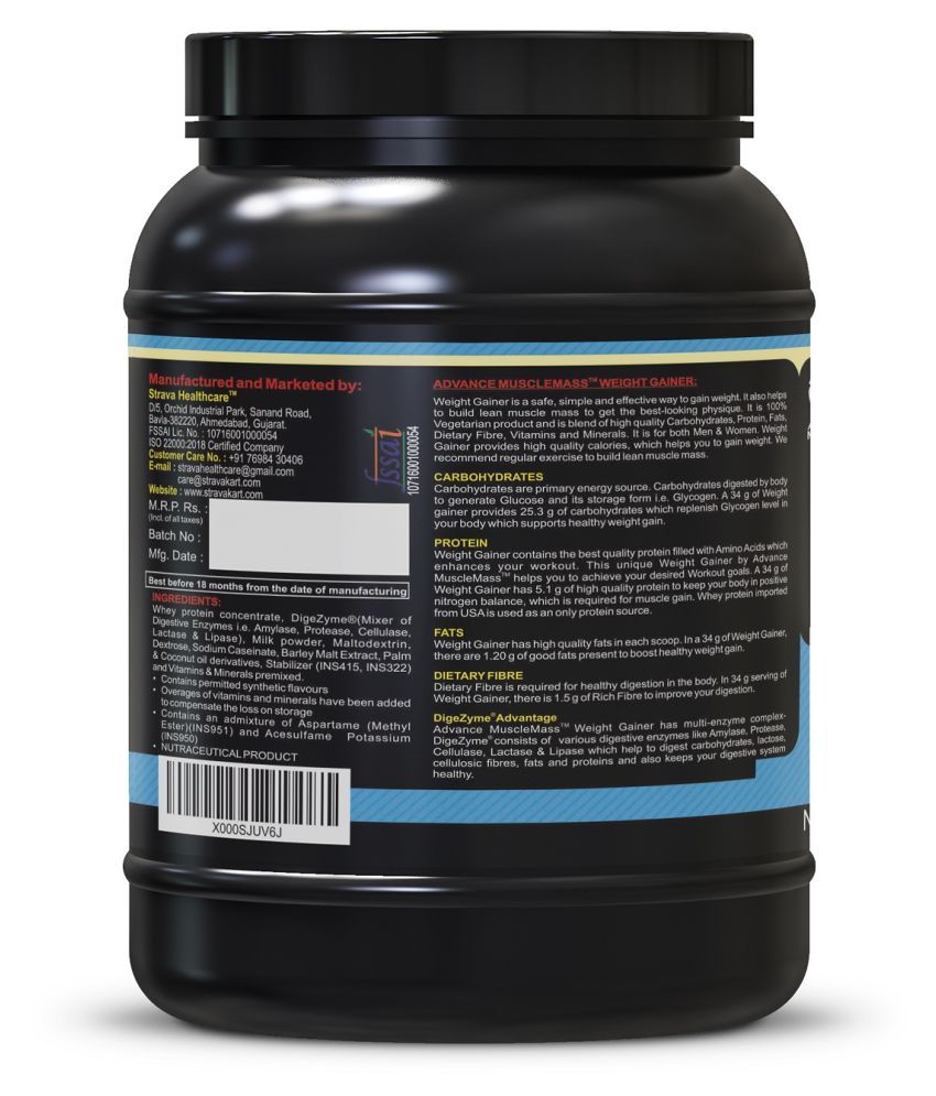 Strava Advancemusclemass Lab Tested Weight Gainer With Enzyme Blend 5 1 G Protein 25 3 G Carbs Chocolate Flavour 1 Kg 2 2 Lb Amazon In Health Personal Care