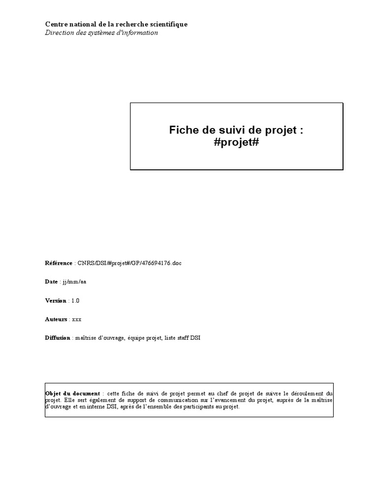 Fiche De Suivi De Projet Projet Direction Des Systemes D Information Entrepreneur Principal Gestion De Projet