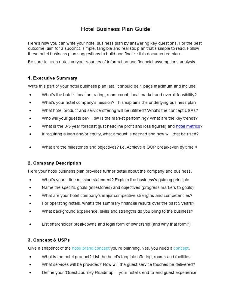 Hotel Business Plan Template In Word Google Docs Apple Pages