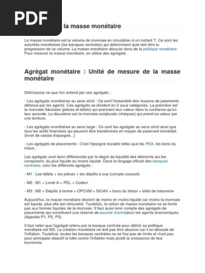 Masse Monetaire M1 M2 M3 Definition Challenges