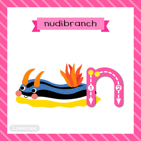 Letter N Lowercase Cute Children Colorful Zoo And Animals Abc Alphabet Tracing Flashcard Of Colorful Nudibranch For Kids Learning English Vocabulary And Handwriting Vector Illustration Tasmeemme Com