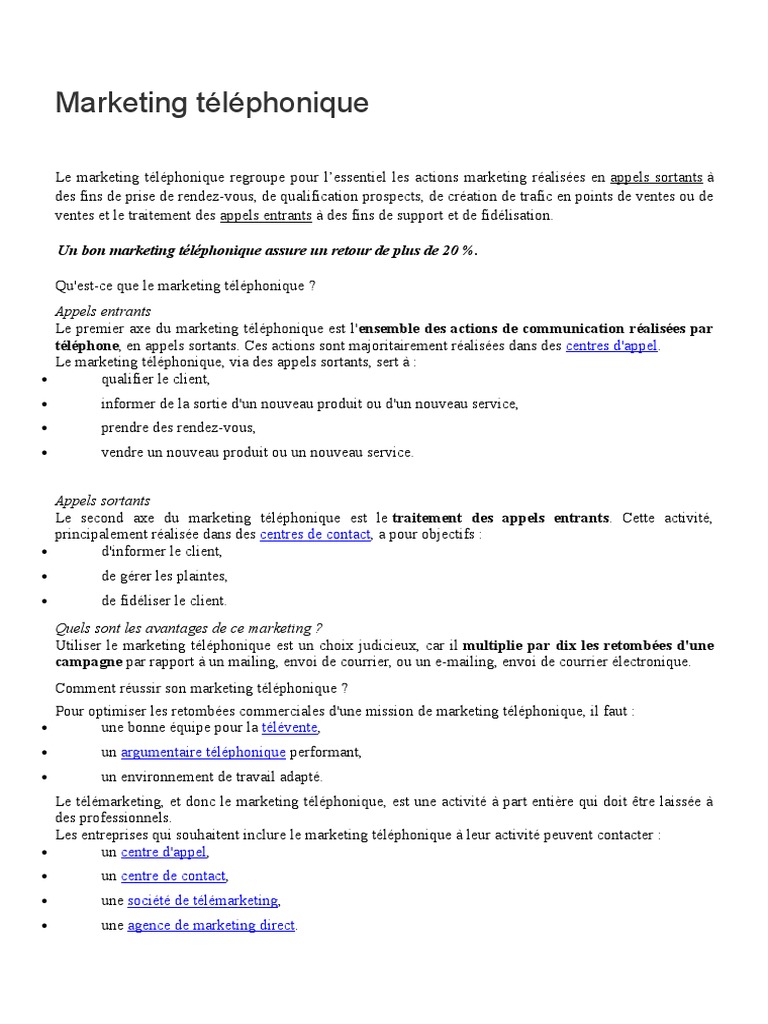 Le Marketing Telephonique By Lajouanie Antoine 19 Hairion Thibault