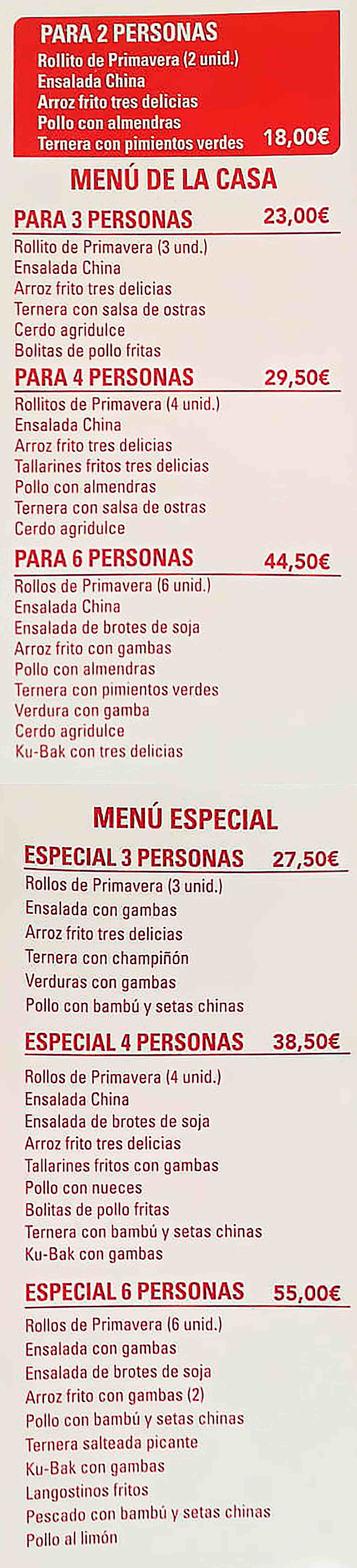 Menu Para 3 Personas Restaurante Chino