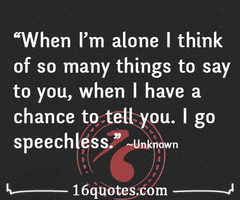 When I'm alone I think of so many things to say to you, when I have a chance to tell you I go speechless. When I’m alone, I think of so many things to say to you But whenever I see you, I go speechless!. A great memorable quote from the Boyhood movie on Quotesnet Mason I just feel like there are so many things that I could be doing and probably want to be doing that I'm just notSheena Why aren't you?Mason I mean, I guess, it's just being afraid of what people would think You know, judgementSheena Yeah I guess it's really easy to say, like I don't care what anyone else thinks.