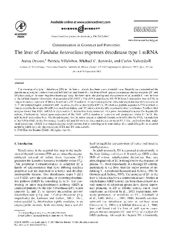 Pdf The Liver Of Fundulus Heteroclitus Expresses Deiodinase Type 1 Mrna Aurea Orozco Academia Edu