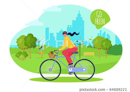 Girl At City Park Ride Bike Vector Stock Illustration 6421