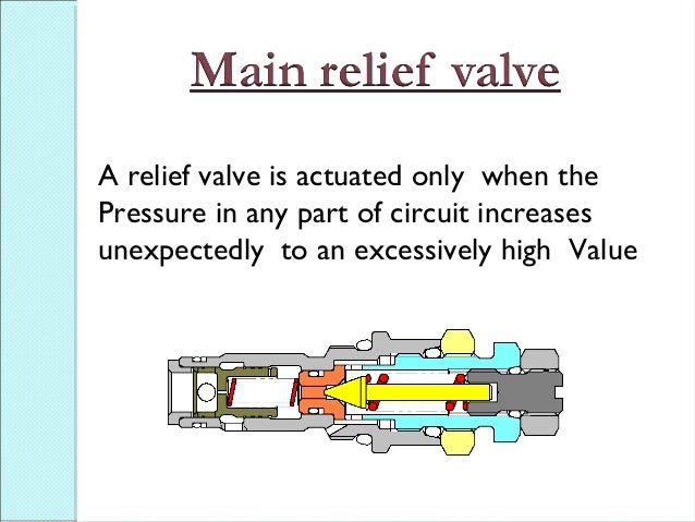 There are two types of valves, directional control valves and pressure relief valves Directional control valves manage the flow path of the fluid in the system Pressure relief valves protect the system plumbing and components against pressure overloads They also limit the output force exerted by rotary motors and cylinders. Our video shows you the cracking pressure, the reseating pressure and what you really need to know about how a hydraulic pressure relief valve worksRelief. It may help you discover a malfunctioning valve you wouldn't find otherwise, and will give you an idea of the valve's barsperturn ratio, which is a handy reference So, to resume whenever you come across a pressure relief valve in a malfunctioning hydraulic system, always check both its setting and adjustability.