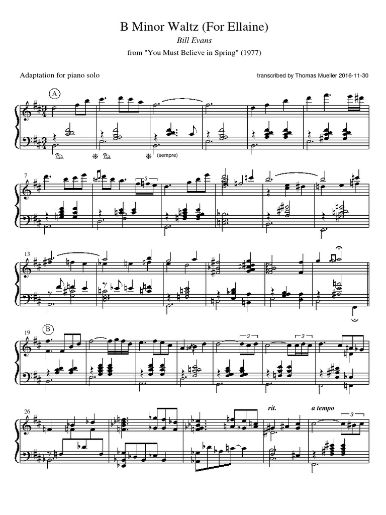 Michel Legrand Michel Jean Legrand (born 24 February 1932, in BéconlesBruyères in the Paris suburbs) is a French musical composer, arranger, conductor, and pianist. You must believe in spring Eddie Gomezpdf (4 KiB) 3 Deuces by Marcus Millerpdf (562 KiB) All the things by Bill Evans (Double BassEtude)pdf (738 KiB) Kadotas Blues by Ray Brownpdf (711 KiB) Organsolo on Chant by Larry Goldingspdf (660 KiB) Pitter Panther Patter by Jimmy Blanton & John Goldsby pdf (1229 KiB). Title File extention Bill Evans Displacement (Complete Riverside Recordings) dmca@popsheetmusiccom.