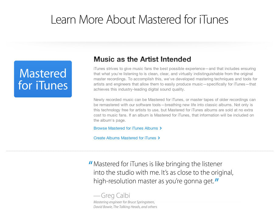 Mastered For Itunes Music As The Artist And Sound Engineer Intended