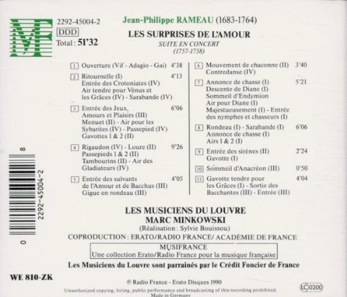 Jean Philippe Rameau Marc Minkowski Les Musiciens Du Louvre Pierre Hantai Hiro Kurosaki Simon Heyerick Daniel Cuiller Hugo Reyne Piet Dombrecht Serge Saitta Rameau Les Surprises De L Amour Suite En Concert
