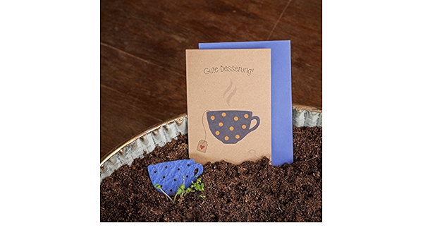 Carte Pliante Gute Bessung La Tasse A The Est En Papier Semi Et Contient Des Graines De Fleurs Sauvages Fleurs Et Carte De Vœux En Un Seul Produit