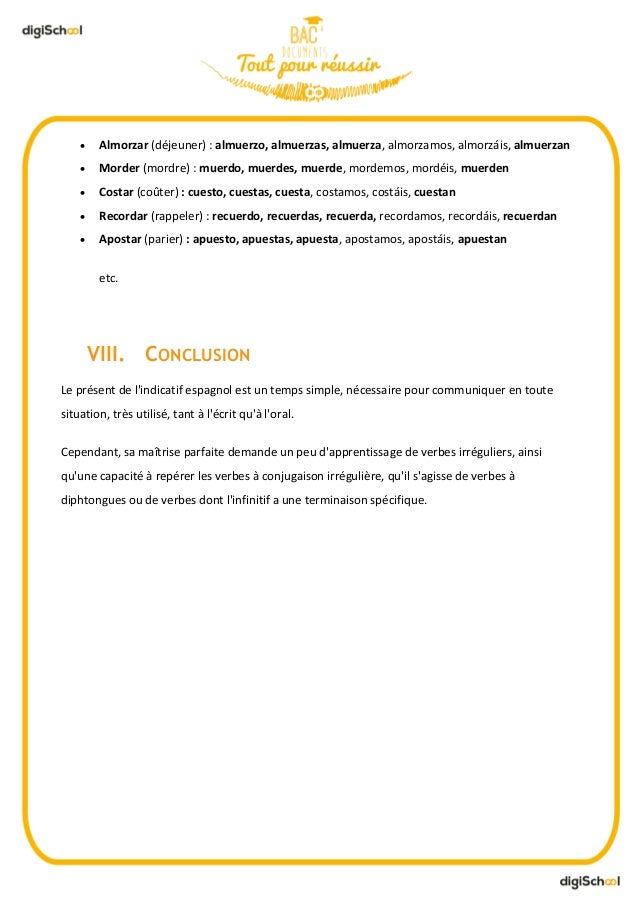 Bac Fiche Espagnol La Conjugaison Bac 18 Toutpourlebac Com
