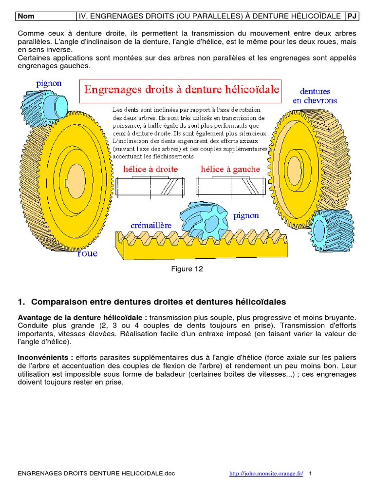 Http Joho P Free Fr Ec Cours doc Engrenages Engrenages Engrenages droits denture helicoidale Pdf