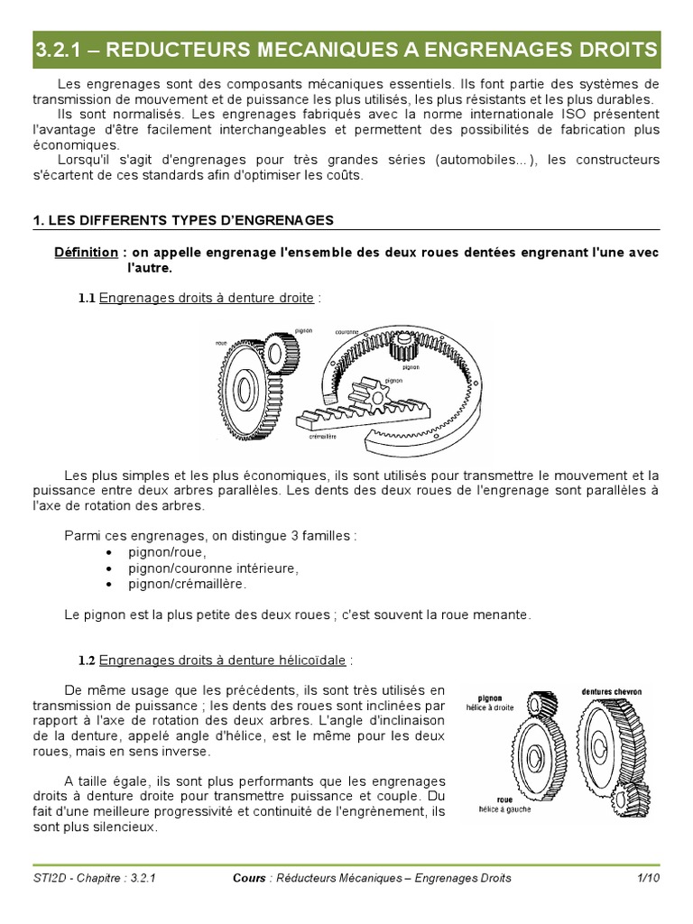 3 2 1 Cours Prof Engrenages Droits Machine Cinematique