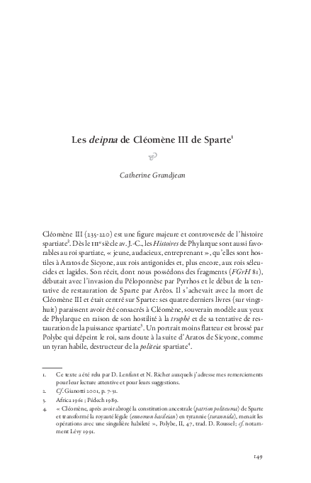 Pdf Les Deipna De Cleomene Iii De Sparte Catherine Grandjean Academia Edu