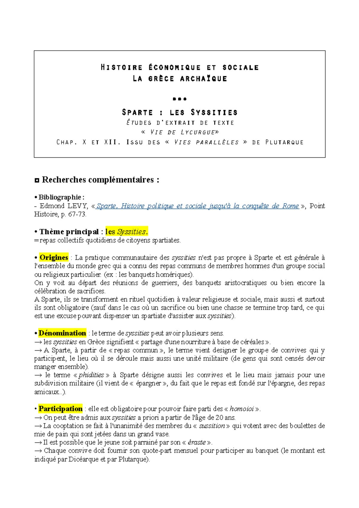 Sparte Les Syssities Cours De Master Histoire Et Litterature Td2 Histoire Antique 14 De Lorraine Archambeau Louisiane Histoire Et Sociale La Sparte Les Studocu