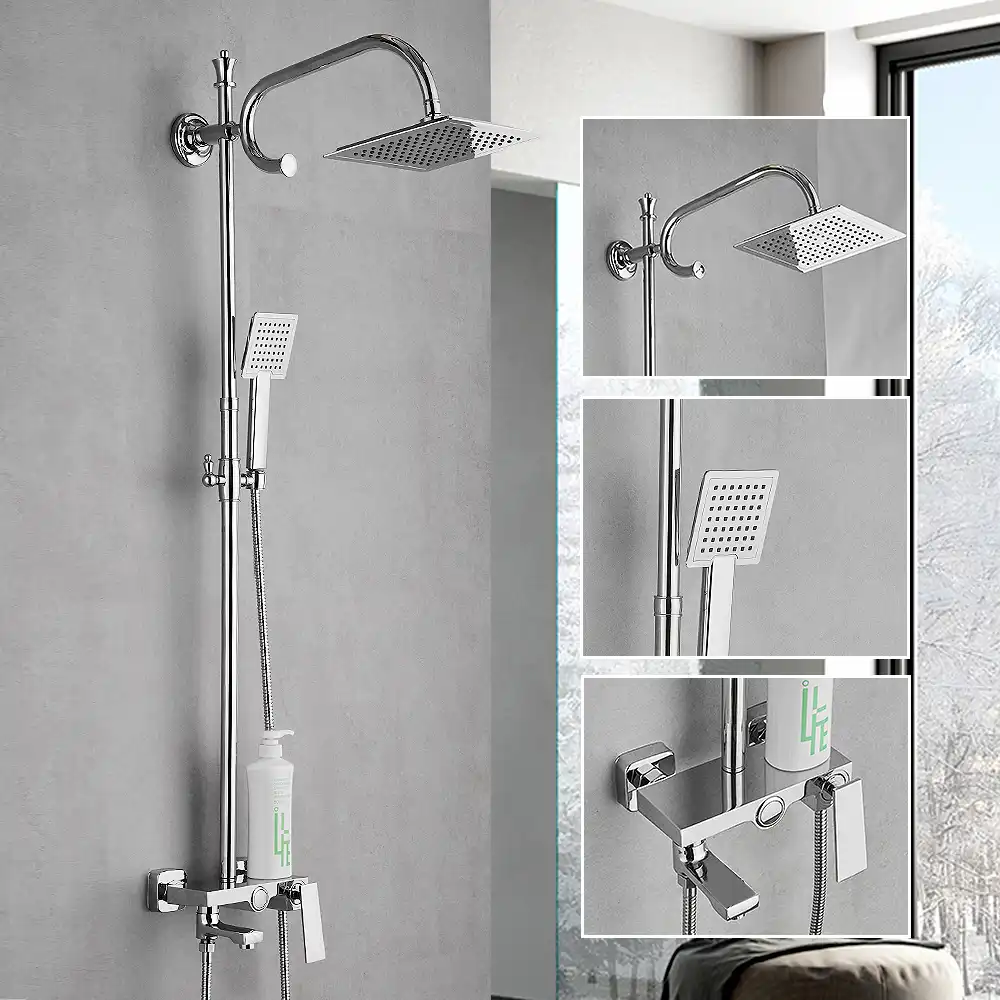 Shower Faucet Retrofit Model Slide Bar Mounted Hand And Fixed Shower Head Kit With Body Jets Belanger Upt