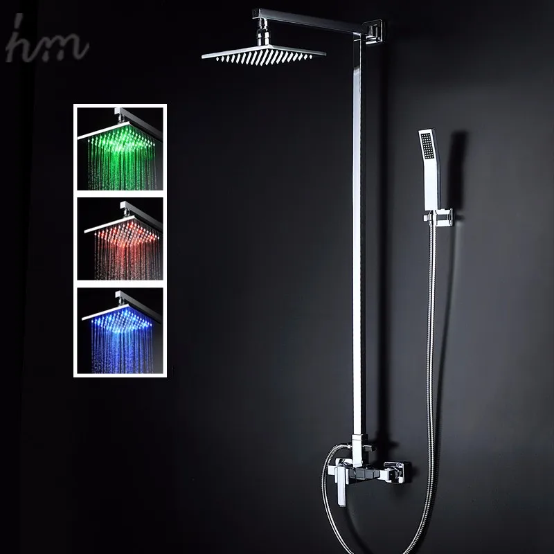 Vierkante 8 Inch Led Licht Douchekop Sets Handheld Douche Met Arm Slide Bar Voor Bad Accessoires Kraan Kranen T Buy 8 Inch Led Douche Sets Vierkante Douchekop Bad Accessoires Kraan Kranen Product On