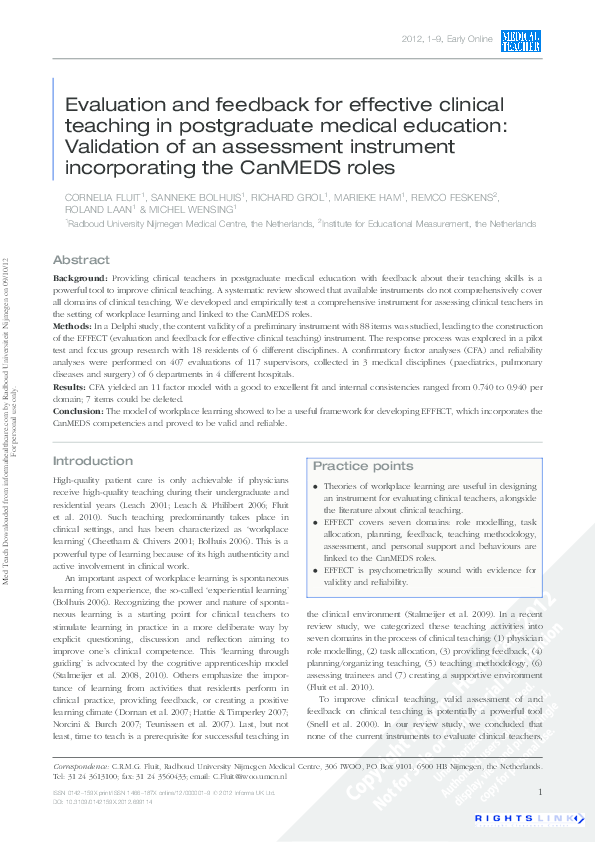 Pdf Evaluation And Feedback For Effective Clinical Teaching In Postgraduate Medical Education Validation Of An Assessment Instrument Incorporating The Canmeds Roles Sanneke Bolhuis And Cornelia Fluit Academia Edu
